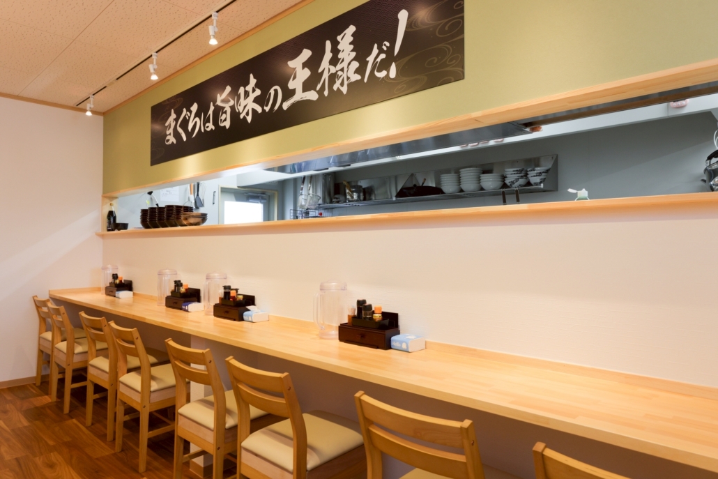 木の温もりを感じる、清潔感のある店内。お一人でも、ご家族でも利用しやすい落ち着いた空間です。