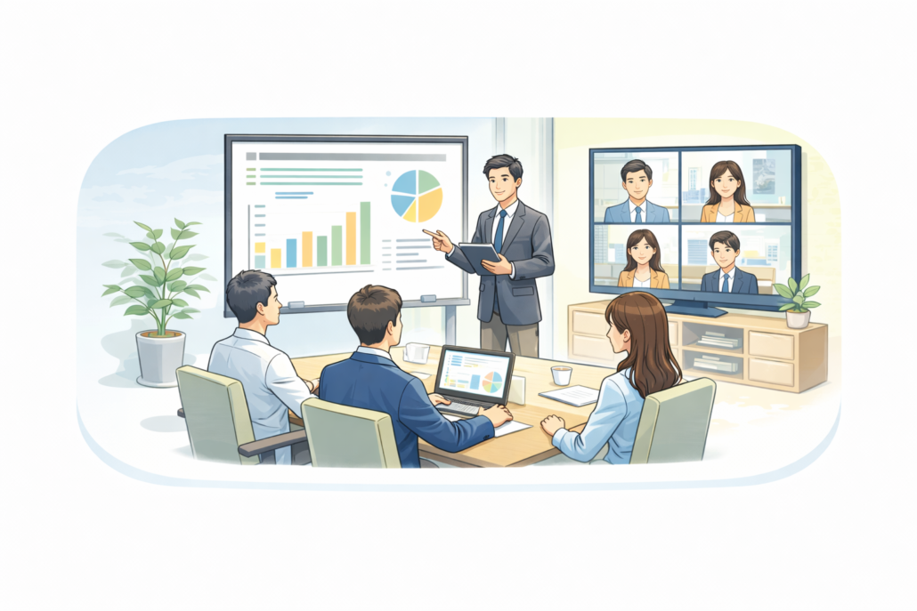 学びが現場で生きる状態をゴールに設計します。